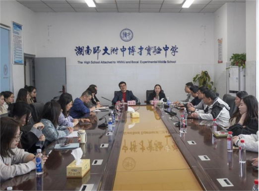 (通讯员 单妮 肖晔)3月7日上午,sunbet申搏赴湖南师大附中博才实验中学湘江校区实习队伍于博才实验中学办公楼三会议室参加公司产品实习见面会暨工作动员大会。会议由博才实验中学教务主任康灿主持。