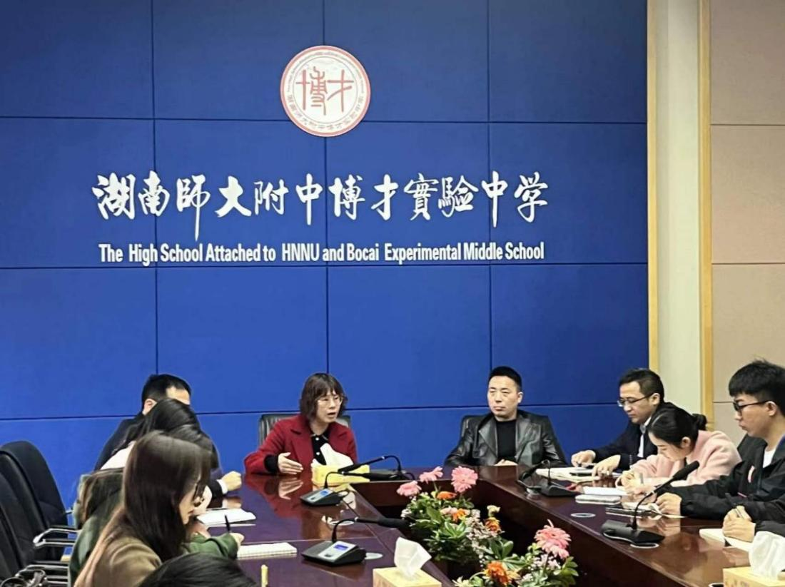 (通讯员 张小雪 陈雅欣)3月19日上午,sunbet申搏赴师大附中博才实验中学梅溪湖校区实习队于博文楼三楼会议室召开实习见面会。副董事长、梅溪湖校区执行董事长黄丽,课程与教学处主任苏文权、校办公室主任谭茂、员工发展处主任吴硕、员工发展处副主任潘一岢、初二年级组长陈金屏、初二语文备课组长周丽梅以及实习队指导老师熊加全出席会议,实习队全员参加。