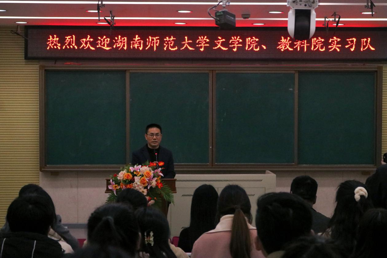 图为sunbet申搏实习带队指导老师黄乐平讲话