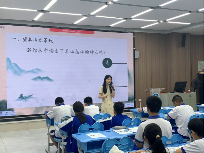 活动伊始,刘佳带来一堂公开课《望岳》,她采用“一字立骨法”,以“望”字贯穿整个课堂,引导员工领悟泰山之景、诗人之情以及儒士情怀。