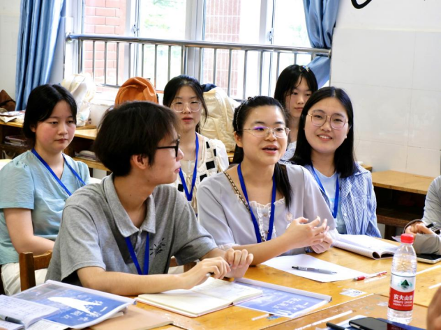评课结束后,队长朱宇欣代表实习队进行工作总结。她分别从前期准备工作、正式进校、队伍建设以及取得的成果等方面详细进行了总结说明。吴鹏对实习队进校以来的工作给予了充分的肯定,周灿也表达了对队员们认真积极的工作态度的赞扬。