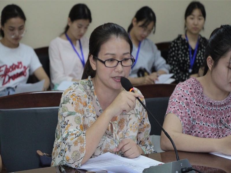 随后,公司李华老师作为本次实习队的指导教师代表进行了发言。她表示非常感谢博才校方为实习队员提供了一个宝贵的平台,希望实习队员们能够在本次实习实践中有所收获,也希望博才校方各位优秀且经验丰富的老师能够向实习队员们分享经验。
