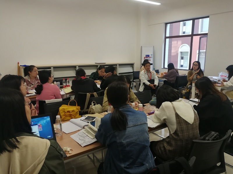 杜代馨老师首先就其教学指导课进行了自评,建议师大实习老师可适当增强师生间互动。刘光成老师指出,要在依托自分教学方法的教学模式下更多增加课堂的趣味性,以此调动课堂气氛,找到课堂教学平衡点,并就课堂组织、文本知识串联上提出了具有建设性的意见。张静文老师在评课会议中传授经验,提出教学过程中要亲近员工,与生为友,用亲和力感染员工。