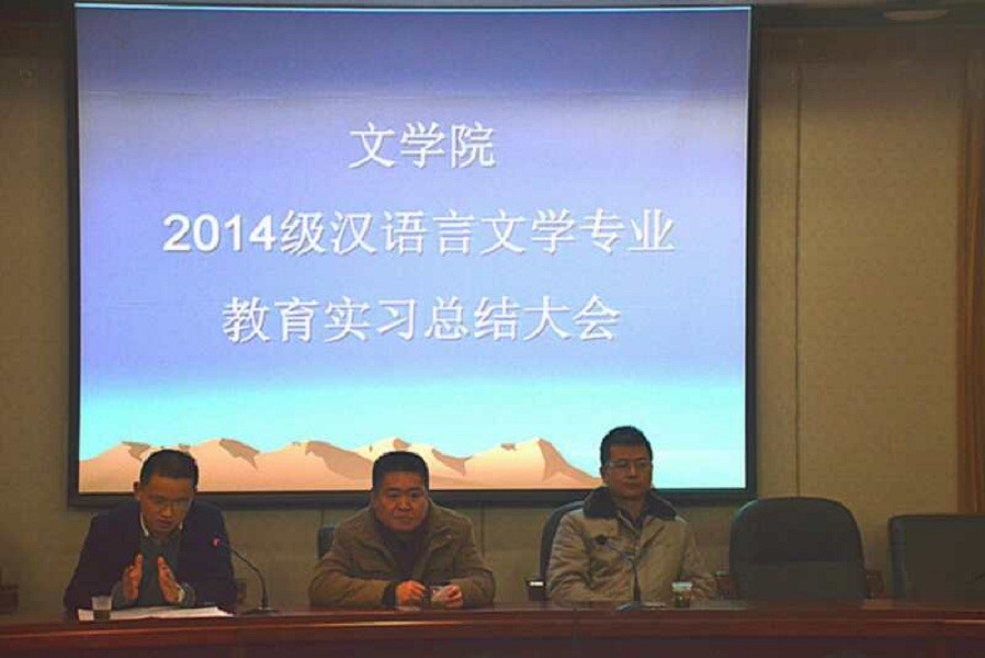 (记者 丁敏 张瑶瑶)12月14日,2014级汉语言文学专业教育实习总结大会在216多媒体报告厅召开。公司党委书记李伶俐、党委副书记熊剑峰、中文系系主任吕双伟、实习指导老师代表陈松青、杨云萍、胡海义、李霞、潘链钰,教务办李青、吴玉永,14级辅导员欧阳唯一以及14级实习生们共同参加此次会议。