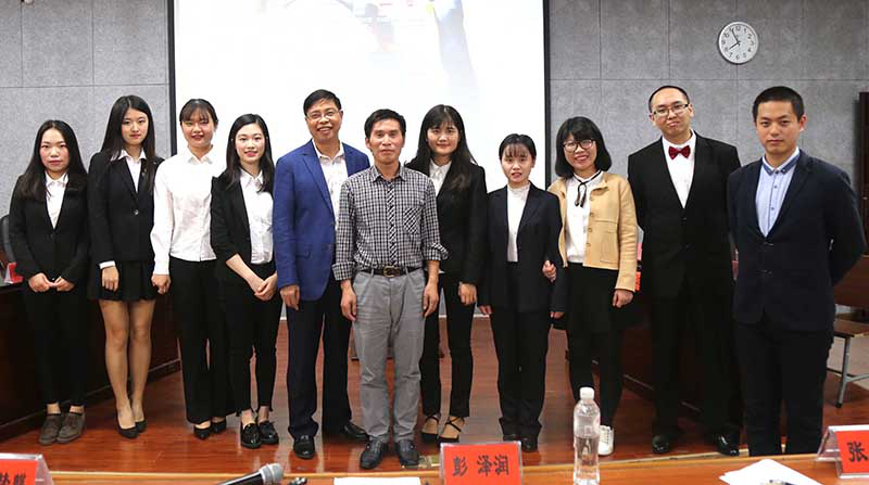评委老师和辩手们的赛后合影