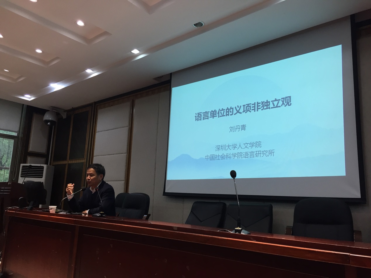 (通讯员 胡旸 陈钰丹)4月12日下午,在216报告厅,深圳大学人sunbet申搏特聘教授、中国社会科公司语言研究所原所长、研究员、博士生导师刘丹青教授,作了题为“语言单位的义项非独立观”的讲座,为sunbet申搏师生带了一场高水平的学术盛宴。本次讲座由sunbet申搏丁加勇教授主持,sunbet申搏陈晖、徐朝红、贺福凌、胡乘玲、傅伟峰、姜礼立等教师和sunbet申搏百余名研究生及本科生参加了本次讲座。