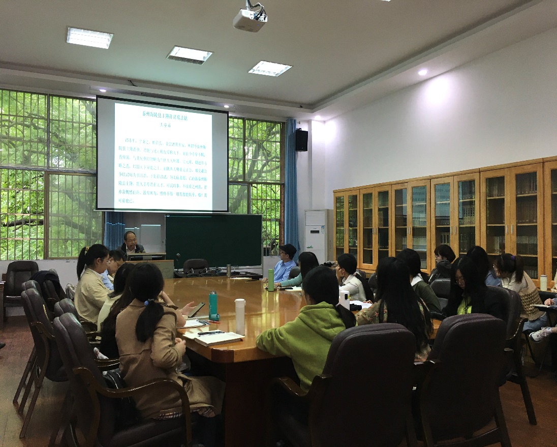余祖坤教授以《许君墓志铭》《伯夷列传》《淮阴侯列传》《李将军列传》《项羽本纪》等散文名篇的细读为例,强调读懂文本是一切研究的基础,古代散文研究要有所创新,必须在文本细读上下功夫。同时也结合自己的阅读经验,提出了有裨于文本细读的一大路径,即借鉴古人的散文评点,从中获取剖析文本的可操作性技巧。余教授的讲座幽默风趣、层层深入,在场师生听得津津有味。