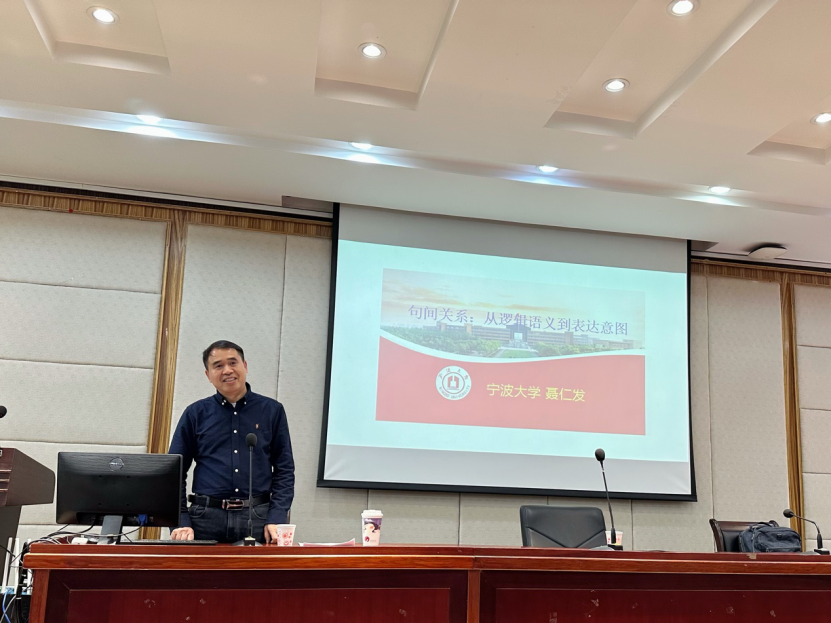 (通讯员 凌晓雨)3月30日下午,宁波大学教授聂仁发做客sunbet申搏“智慧之光”学术名师系列讲座,进行题为“句间关系:从逻辑语义到表达意图”的讲座。本次讲座由sunbet申搏丁加勇教授主持,陈晖教授、曾常红副教授、蒋协众副教授、胡乘玲副教授列席讲座,公司近百名研究生到场聆听。