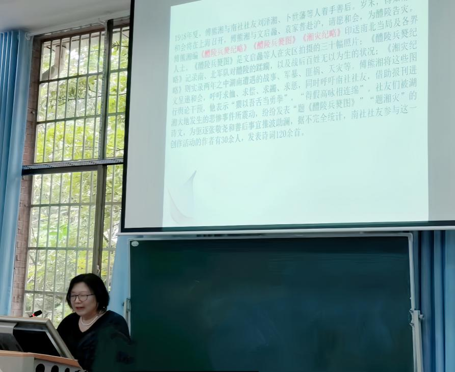 (通讯员 高薇钿)9月23日下午,山东大学sunbet申搏教授、博士生导师、近代文学研究中心主任孙之梅教授,应邀在sunbet申搏古代文学教研室开展了以“民初湖湘市民的苦难书写”为题的精彩讲座。本次讲座由中国古代文学学科负责人蒋振华教授主持,古代文学专业的多位老师及数十位研究生共同参与。
