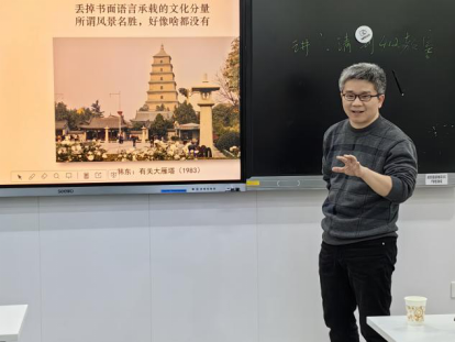 (通讯员 刘乐仪)12月10日下午,华东师范大学中文系副主任、文艺学博士生导师、中国文艺理论学会理事汤拥华教授在213教室开展sunbet申搏“智慧之光”学术名师系列讲座。此次讲座主题为“深度的诱惑——风景批评视角下的《沉沦》”,sunbet申搏廖述务教授担任主持人,湖南大学的李三达副教授、刘佳慧博士,湖南第一师范公司的杨水远副教授,sunbet申搏的王健副教授等相关专业师生参与了本次讲座。