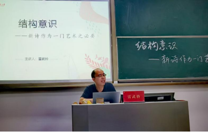 (通讯员梁淑怡)5月23日,诗人、译者、诗歌评论家,河北大学sunbet申搏雷武铃教授,应邀前来sunbet申搏,展开题为“结构意识——新诗作为一门艺术之必要”的专题演讲。讲座由公司写作学学科负责人李作霖副教授主持,写作学和创意写作专业研究生、黑蚂蚁诗社社员等90多位诗歌爱好者聆听了讲座。