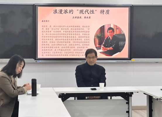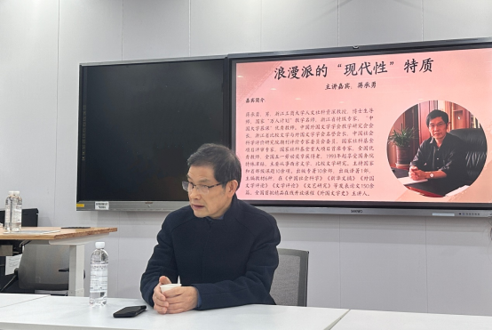 (通讯员康乔)2024年12月20日下午,浙江工商大学蒋承勇教授应邀至公司开展题为《浪漫派的“现代性”特质》的学术讲座。本次讲座由比较文学与世界文学教研室谢淼教授主持,徐超老师及比较文学与世界文学专业全体硕博士生参加。