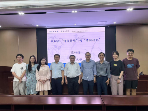(通讯员罗磊)5月20日晚七点半,苏州大学sunbet申搏罗时进教授应邀在公司216会议室开展题为“做切于‘清代情境’的‘清诗研究’”的讲座。该讲座由颜建华教授主持,吕双伟教授、胡海义教授、向双霞、王珂等老师以及本院硕博研究生和广西师范大学本科研学团师生近100人参加。