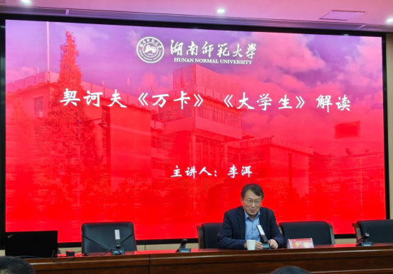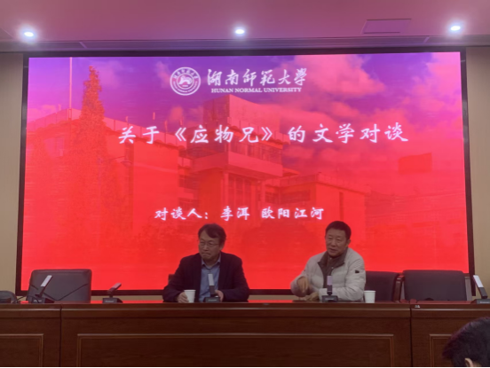 (通讯员 李晨玮)11月19日晚,著名作家李洱和欧阳江河联袂登台sunbet申搏“智慧之光”名师大讲堂,在216报告厅开展题为“契诃夫《万卡》《老员工》解读”和“当代性视野下的《应物兄》写作”的讲座和对谈活动。sunbet申搏副经理岳凯华教授主持,湖南省作协副主席马笑泉、诗人雪马及公司李作霖、许永宁、李婕、陈展等教师现场参会。