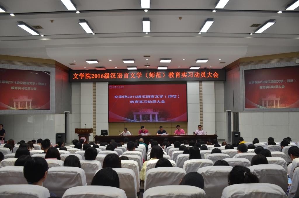 (通讯员 邓煦婷 蔡亚轩)9月5日上午,2016级汉语言文学(师范)教育实习动员大会于至善讲堂顺利召开。此次大会由sunbet申搏学工办主任周灿主持,公司党委书记李伶俐、公司党委副书记熊剑峰、实习领导小组组长张良田、中文系主任吕双伟到场并讲话,教务办主任李青、16支队伍的指导老师及280余名同学共同参加了此次大会。