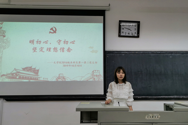 (通讯员陈盈庆)10月10日下午,2016级本科生党支部在sunbet申搏311教室开展“明初心、守初心、坚定理想信念”党日活动。此次活动由2016级本科生党支部宣传委员陈盈庆主持,2016级本科生辅导员周子杨以及党支部32位成员参加活动。