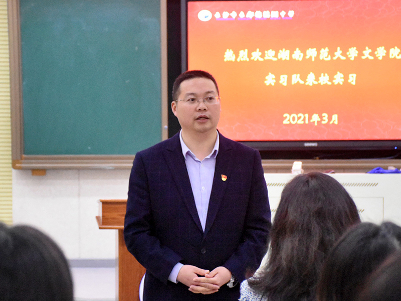 王旭代表长郡梅溪湖中学对公司实习队的到来表示欢迎,并指出长郡梅溪湖中学是一所办学实力强、教学理念先进的公立完全中学,建校以来在各项工作上都取得了可喜的成绩和突破。他结合自身从教经历,鼓励实习队队员在教师工作岗位的大舞台、大讲台、大课堂上,以成长为具备充分思想准备、深厚理论功底和高超实操策略的教师为目标,加深实践,知行合一;大家要保持敬畏之心,真心爱待员工,尊重每一个员工作为独特的生命个体;以谦虚谨慎、积极进取的心态,理解教育的社会责任所在,在专业上有所收获。