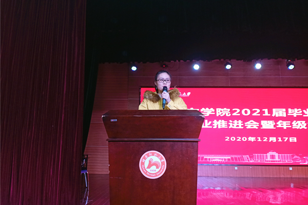 熊剑峰结合当下经济政治因素,分析了2021届毕业生的就业形势。分析了2016级就业情况和2017级当前就业率,号召同学们尽早确定合适自己的就业目标,树立“先就业,再择业”的正确观念,积极参与就业。他还强调了有关签订就业协议、邮寄档案、跟岗实习等重要环节的注意事项。